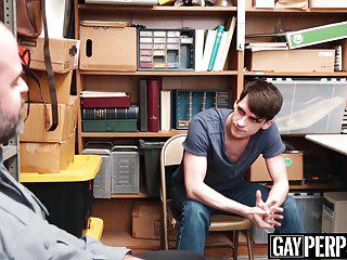 Der junge Dieb verspritzt seinen Saft während er ohne Gummi vom Cop gefickt wird